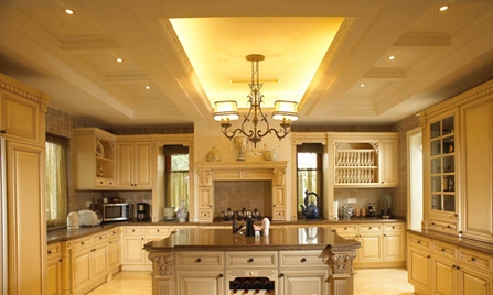 與普通消費(fèi)者相比,別墅的房主更注重整體廚房的美學(xué)效果、藝術(shù)協(xié)調(diào)和品牌。簡(jiǎn)單地說(shuō)即是整體的設(shè)計(jì)感、個(gè)性化,同時(shí)功能要齊全。廚房可以顯示主人的品位,這種品位主要體現(xiàn)在一些有創(chuàng)意的設(shè)計(jì)上,別墅廚房吊柜可以設(shè)計(jì)一些玻璃門或吊格,柜內(nèi)安裝圓杯燈,便于存放收藏品或書籍。