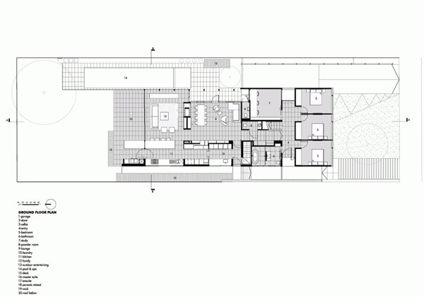 設(shè)計(jì)師以精簡(jiǎn)的表達(dá)方式,完成了一件戲劇性的別墅建筑,該設(shè)計(jì)演繹出空間的靈活性,又不失去家庭生活的實(shí)用。 這個(gè)實(shí)用又美觀的住宅外觀平淡無(wú)奇,作為一個(gè)靈活的家庭生活空間,室內(nèi)和外部環(huán)境的界線(xiàn)用模糊的手法處理,使每個(gè)生活空間都和戶(hù)外相結(jié)合。 該建筑的精巧細(xì)致,大膽的直線(xiàn)形式,和植物相映生輝。房子的一側(cè)入口實(shí)用舊鐵路枕木做成,在地面形成一個(gè)有趣的路徑。